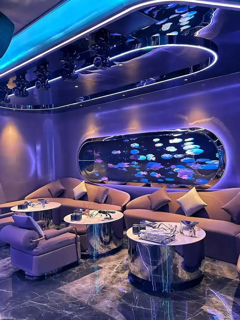 商务KTV以其高雅舒适的环境设计,为您营造出尊贵惬意的氛围。细致周到的服务让您感受到宾至如归的体验,独特的装修风格更是为您的娱乐之夜增添了一份特别的情调。